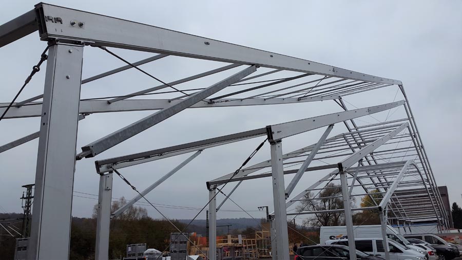 Ob als Schnellbauhalle oder zur Lagerflächenerweiterung, Flugdach oder Verkaufshalle, unsere Leichtbauhallen überzeugen auf allen Linien. Flexibel in Größe und Ausstattung können sie sowohl für den industriellen als auch den gewerblichen Bedarf genutzt werden. Die Leichtbauhallen werden nach den höchsten Qualitätsstandards gefertigt und auf Grundlage der vorhandenen Bausätze je nach Anforderung für Sie zusammengesetzt. Ein wetterfestes Dach schützt den Innenbereich vor Sturm, Regen und anderen Witterungseinflüssen. Antikondesatvlies sorgt für die richtige Klimatisierung und beseitigt Schwitzwasser