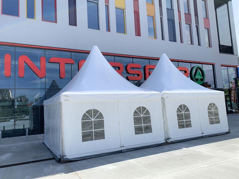 - Formschöne quadratische Spitzdachzelte