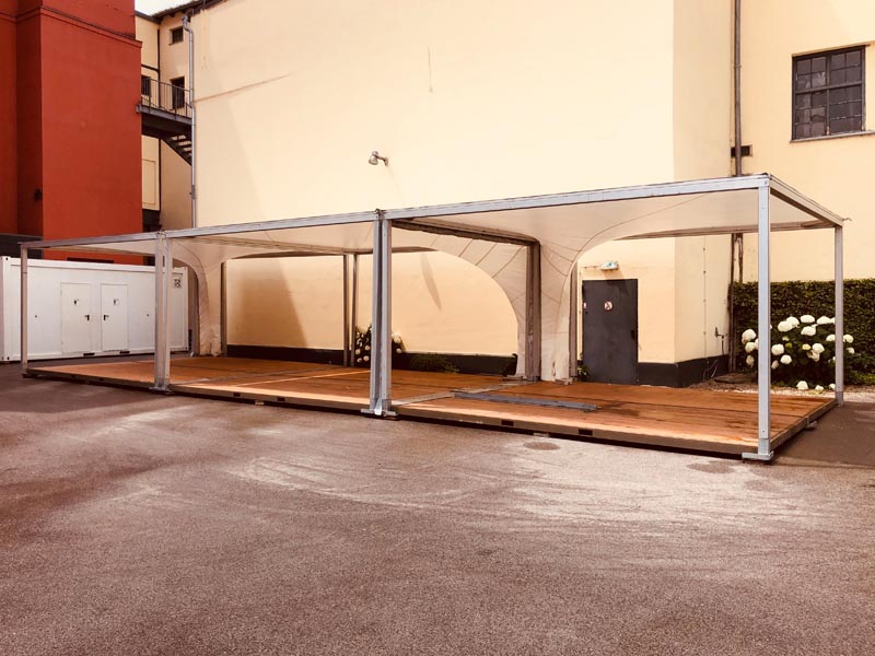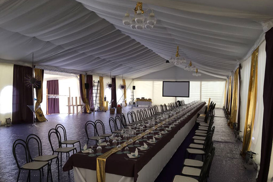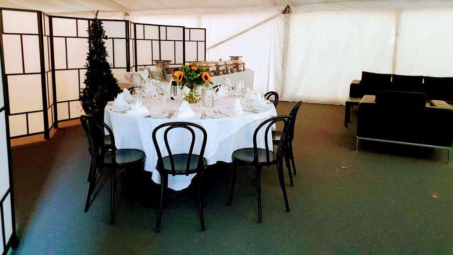 Wir liefern Ihnen nicht nur das passende Zelt, sondern auch die benötigte Ausstattung. Bühne, Heizung, Fußboden, Pagode, Teppich, Sitzgelegenheiten, Lampen und Dekor – alles bekommen Sie gleich mit dazu. Das ansprechende Design sorgt für das richtige Ambiente und heizt die Partylaune Ihrer Gäste so richtig an.